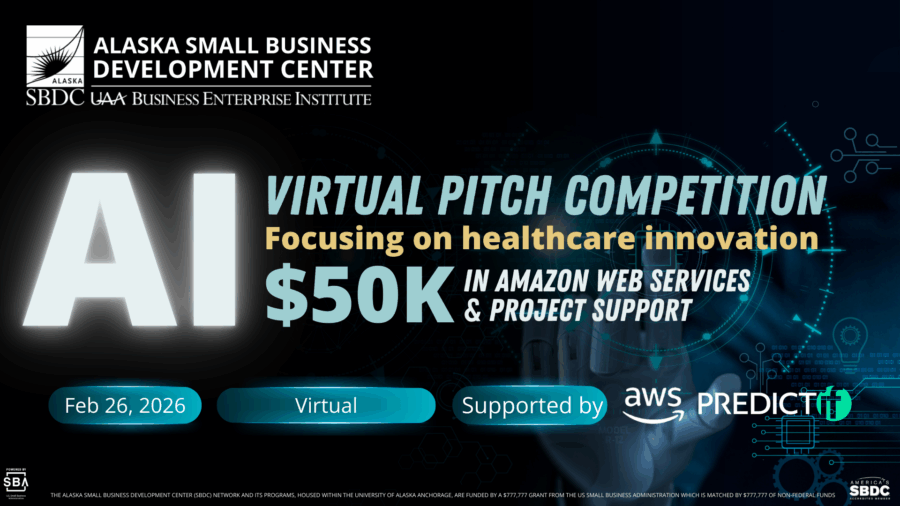 Supported by PREDICTif Solutions and Amazon Web Services (AWS) and hosted by UAA’s Alaska Small Business Development Center (Alaska SBDC), this competition brings together Alaska’s most promising healthcare innovators and AI-driven entrepreneurs for a high-energy pitch experience focused on improving health outcomes statewide.