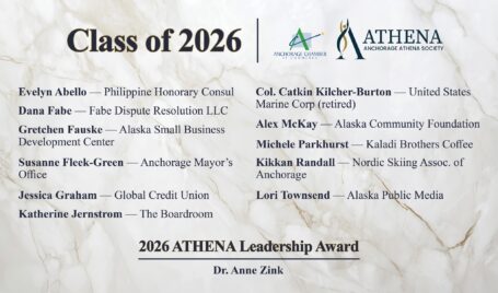 Each year, the Anchorage ATHENA Society, in partnership with the Anchorage Chamber of Commerce, recognizes outstanding women for their leadership and excellence in business, meaningful community service beyond their professional roles, and their dedication to helping other women reach their full potential. Induction into the ATHENA Society honors sustained impact, integrity, and a commitment to lifting others.